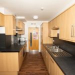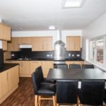 Ensuite bedrooms are arranged in flats for 5, 6, or 8 residents to share. Some flats have a combined kitchen/dining/lounge area and others have a kitchen/diner with separate lounge. All kitchens are equipped with 2 ovens/hobs/extractors, 2 fridge/freezers, dishwasher, storage cupboards, microwave and vacuum cleaner. A breakfast bar and stools are also included. Comfy leather sofas, coffee table and 42 inch wall mounted tv let you relax with your friends in the lounge area.